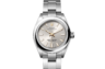 Rolex utiliza acero Oystersteel para las cajas de acero de sus relojes. Especialmente desarrollado por Rolex, el acero Oystersteel pertenece a la familia del acero 904L, las aleaciones más utilizadas en la alta tecnología y en las industrias química y aeroespacial, en las que la resistencia a la corrosión es esencial. El acero Oystersteel es extremadamente resistente, ofrece un acabado excepcional al ser pulido y conserva su belleza incluso en las condiciones más extremas.