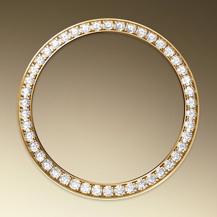 Esta esfera presenta diamantes con engaste chatón de oro de 18 quilates. El nácar, por su naturaleza, se presenta como un material misterioso y sorprendente. Según su origen, puede ser rosa, blanco, negro o amarillo. Su color, intensidad y estructura varían dependiendo de la parte de la concha de la cual ha sido extraído. En Rolex, el nácar nunca se colorea de forma artificial. Sencillamente destacamos su belleza natural y preservamos sus colores naturales gracias a un savoir‑faire particular y una gran habilidad. Las esferas de nácar son piezas únicas, por lo que nunca encontrará una igual a la suya en otra muñeca.