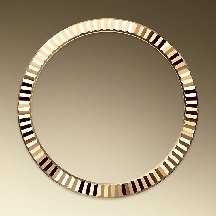 El bisel estriado de Rolex es una marca de distinción. En un principio, el diseño estriado del bisel Oyster tenía una función específica: servía para atornillar el bisel a la caja garantizando la hermeticidad del reloj. Además, era idéntico al acanalado del fondo de la caja, atornillado a ésta por la misma razón, mediante herramientas específicas de Rolex. Con el tiempo, el estriado se convirtió en un elemento puramente estético, una auténtica característica distintiva de Rolex. En la actualidad, el estriado es una marca de distinción, en oro en este Datejust 41.
