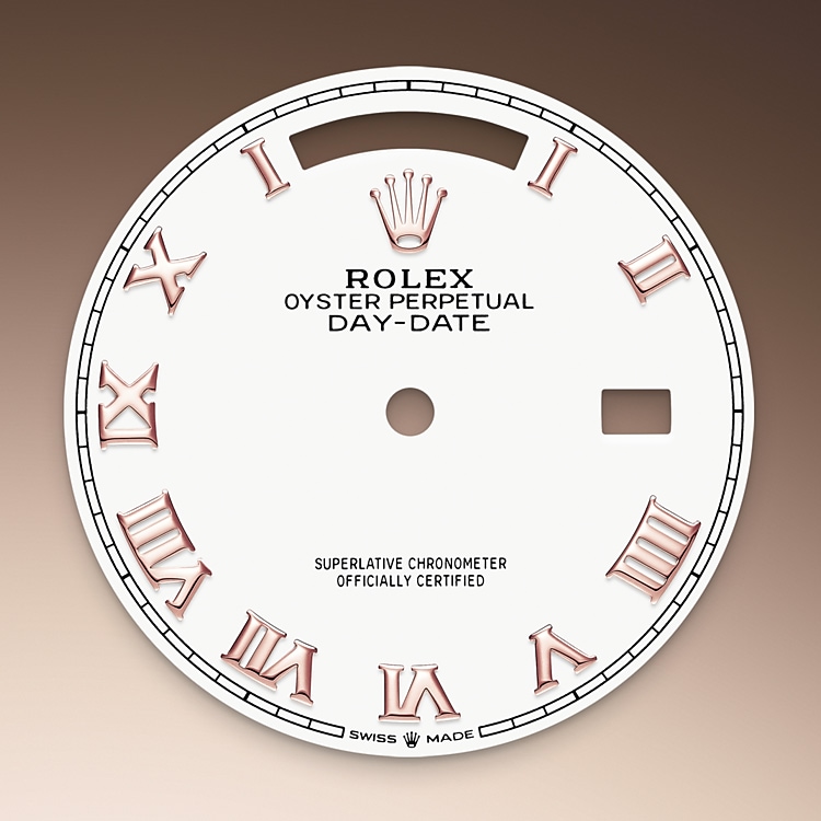 El bisel estriado de Rolex es una marca de distinción. En un principio, el diseño estriado del bisel Oyster tenía una función específica: servía para atornillar el bisel a la caja garantizando la hermeticidad del reloj. Además, era idéntico al acanalado del fondo de la caja, atornillado a ésta por la misma razón, mediante herramientas específicas de Rolex. Con el tiempo, el estriado se convirtió en un elemento puramente estético, una auténtica característica distintiva de Rolex. En la actualidad, el estriado es una marca de distinción, en oro en este Day‑Date 36.