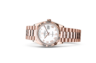 Para preservar la belleza de sus relojes de oro rosa, Rolex creó y patentó una exclusiva aleación de oro rosa de 18 quilates en su propia fundición: oro Everose. Presentado en 2005, el oro Everose de 18 quilates se emplea en todos los modelos Rolex Oyster de oro rosa.